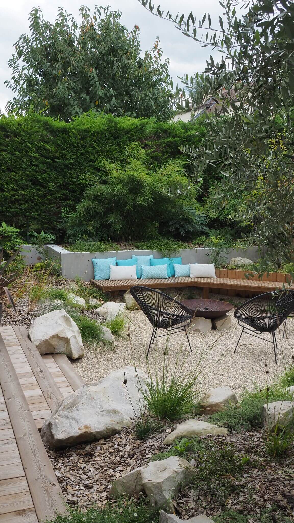 Fossés a donné une seconde vie à un jardin-corridor en manque de charme. L'utilisation d'obstacles visuels